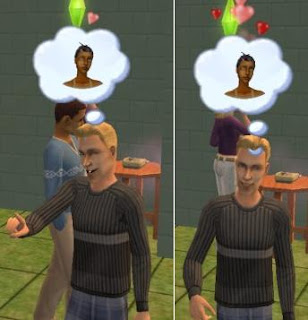 I took two sims to a community lot to see if I could accomplish two with one trip. Well, I didn't juggle it well and this sim caught Glad cheating. I'm sharing the picture because the pop up says "This vacation is worth every penny" and has a bad memory above his head.
